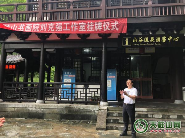 近日,天柱山书画院“刘克强工作室”挂牌仪式在山谷流泉文化园隆重举行。此次活动由天柱山管委会、潜山市文联联合举办,天柱山书画院、天柱山画家村美术馆具体承办。天柱山管委会、潜山市文联、天柱山镇、天柱山旅游公司等相关单位负责人;国内知名画家刘克强、汤敏杰、余国友;国家注册拍卖师李树友以及来自全国各地的企业家,本地书画爱好者,圈内好友等几十人参加了揭牌仪式。