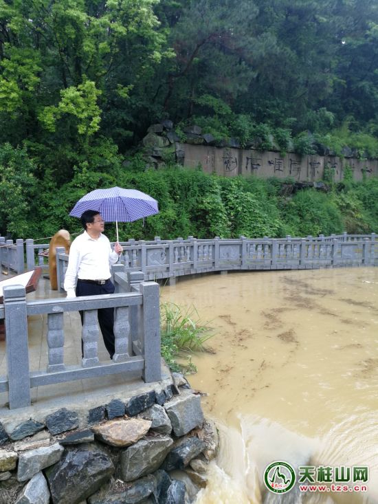 5月26日,市委常委、天管会副主任涂高生深入潜河、天柱山镇、天柱山景区督查防汛工作。