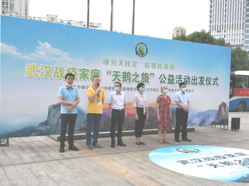 “缘分天柱定,皖鄂传真情”。8月21日,严格按照防疫要求,来自武汉市120个战疫家庭共300余人分乘10辆大巴从武汉市民之家出发,开启由安徽天柱山景区长江日报长江公益武汉市青少年发展基金会共同举办的“天鹅(鄂)之旅”。这些抗疫英雄和他们的家人将在美丽的天柱山景区游玩、休养,共度酷暑,共赏美景。