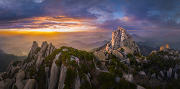 特色: 晨曦初现之际,安徽潜山天柱山从混沌中缓缓苏醒,紫金色的光线穿透天柱山的重重群峰,将历经亿万年的岩石染成琥珀色。崖壁上的每一道裂纹,都流淌着如熔金般的光泽。那些积聚了一夜的云团,在晨光中渐渐舒展成金色的绸缎,从青龙背的脊线漫溢而下,沿着天蛙峰的弧线铺向远方。阳光穿过云层的刹那,云海里便跃动起无数光点,成为此时最灵动的笔触,勾勒出一幅壮丽的画卷。