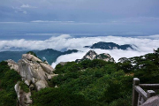 特色: 薄雾缠玉带,云涛波流涌。昨日,在天柱山惊现绝美云海奇观,万余名游人目睹了如此胜景。当日,5时许,在近一个小时的期盼与等待中,一轮圆日,终于喷薄而出于东方,朝阳染红了天际,金色照耀着大地,光辉万丈,气势恢宏,也就是在那一瞬间,云海翻腾。翻腾的云海犹如大海的波涛,变幻莫测,此情此景,宛如走进了一幅丹青水墨的画卷。洁白的云雾形成广阔的云海环绕天柱峰,山峰周围被洁...